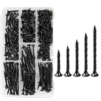 Generasis - Assorted Black Drywall Screw Set – 490-Piece Set with 7 Sizes (13mm to 60mm)